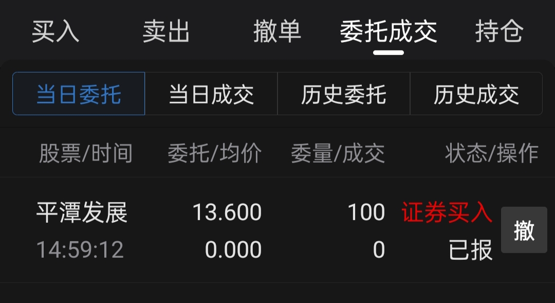 $平潭发展(SZ000592)$ 周五尾盘买入没成交,说明什么?