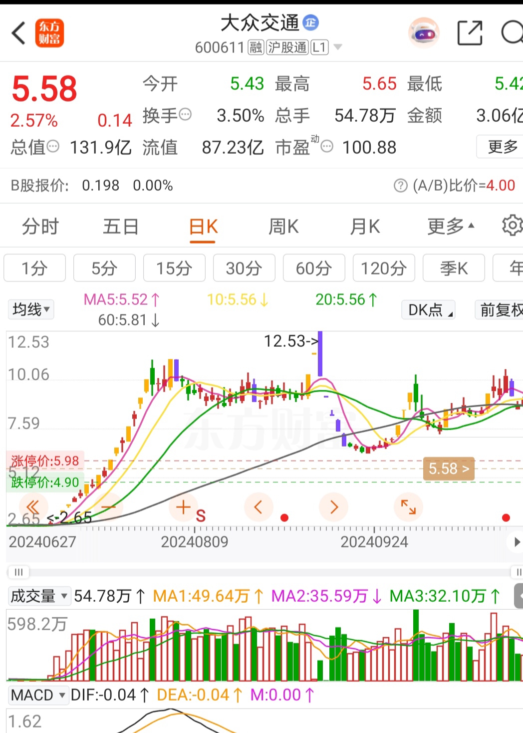看看大众交通吧,第一个跌停股价10.25元,五十天后盘中最高价10.61元,且平