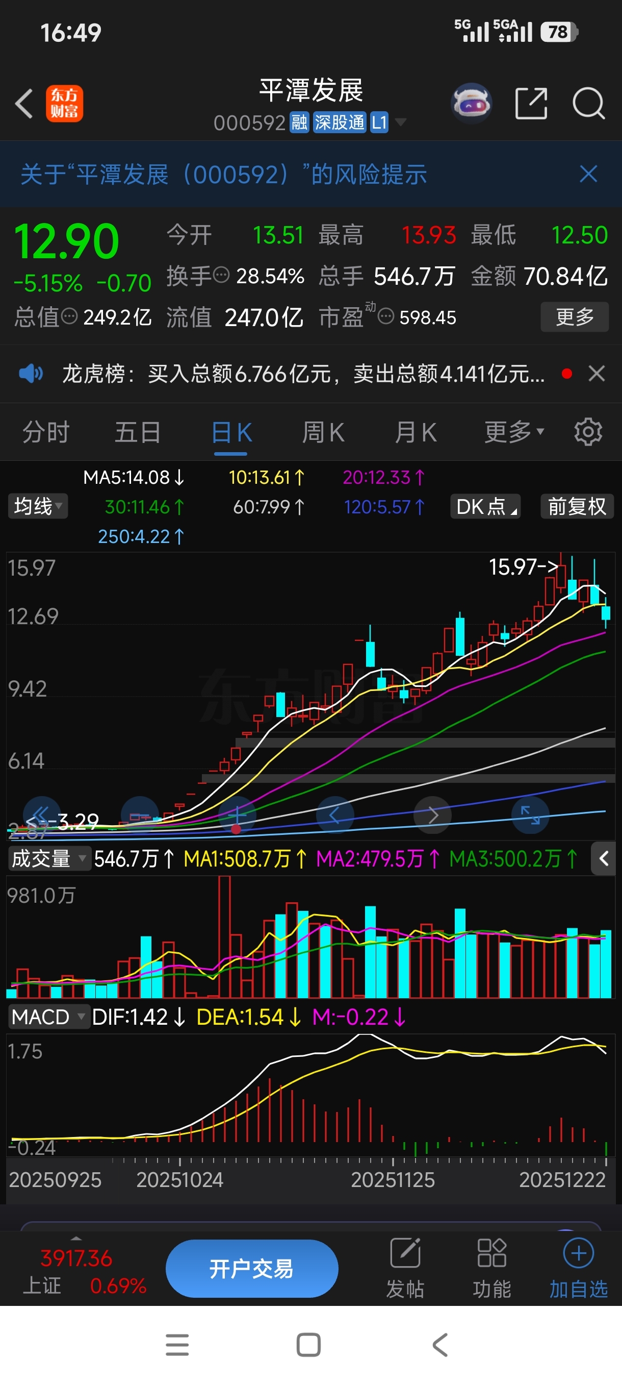 最后一贴,到此为止,我看明天结果,平盘我就不来了,为什么我看跌,有人说我多管闲事,好吧,给你秀秀技术,上面日线,股价创了新高,但是成交量背离。macd背离死叉,这是不是图形上的技术形态,不是我胡说的吧,这就是顶背离,明显见顶信号,还狡辩什么?肯定是有段下跌,到此为止,好良言难劝该死的鬼!