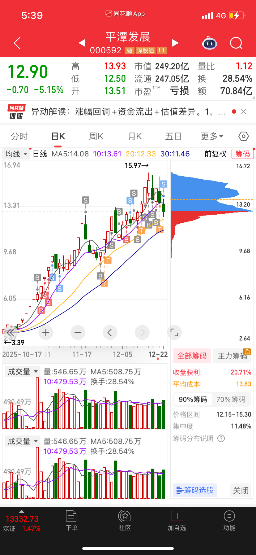 $平潭发展(SZ000592)$ 早上开盘精准出货,平潭短期到顶了,小心下杀,有没有机会也是元旦前后,外面大把好票。没有必要这里风险大