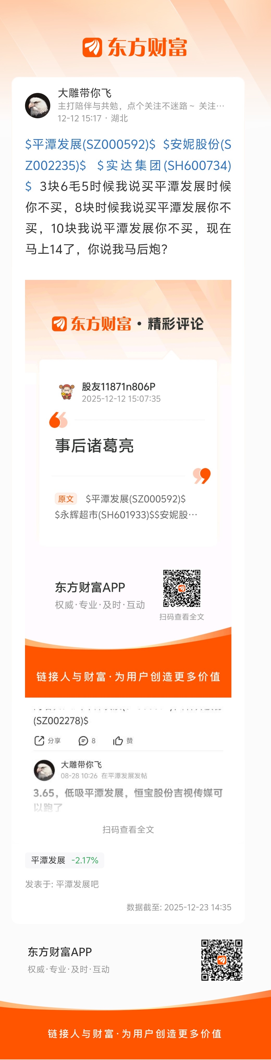 3块6毛5时候我说买平潭发展时候你不买,8块时候我说买平潭发展你不买,10块我说
