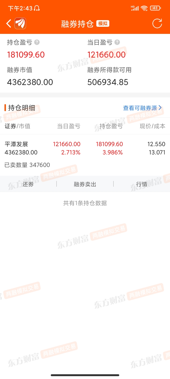 $平潭发展(SZ000592)$ 真的挣钱啊融券