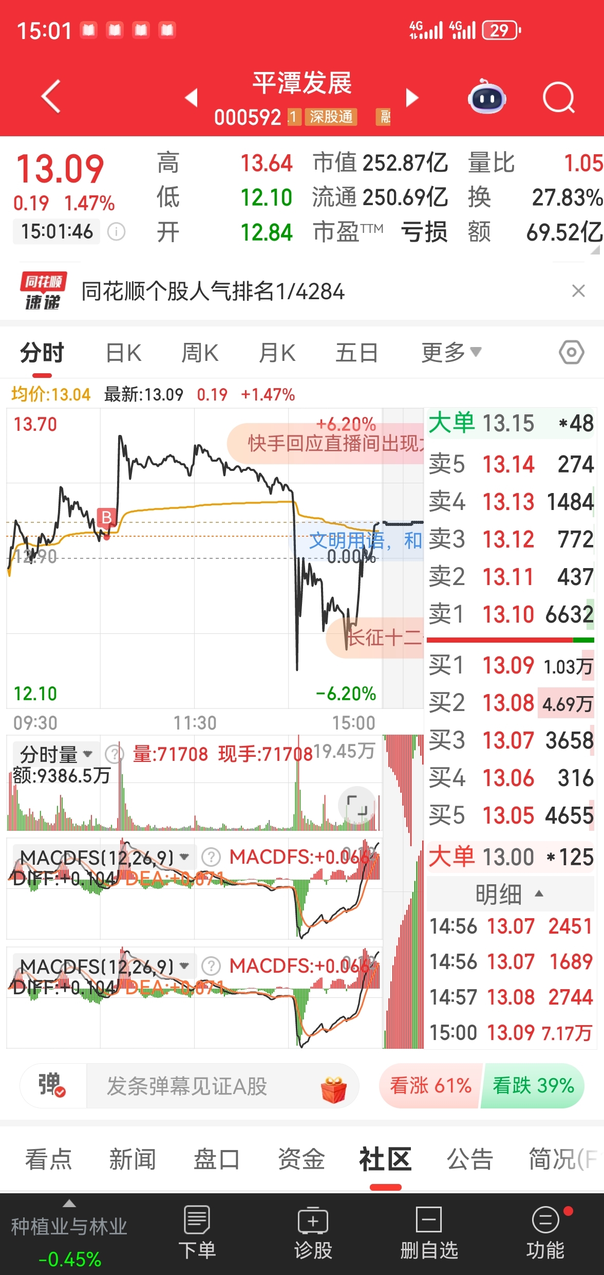 $平潭发展(SZ000592)$ 我以为今天抄底成功哭晕厕所,不敢加仓,是我格局小了