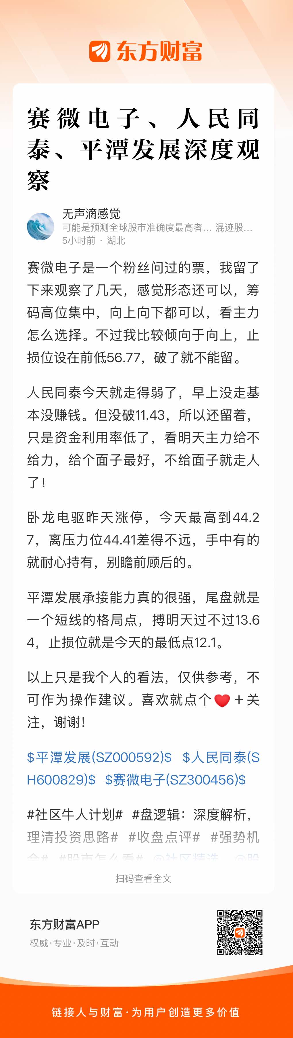 $平潭发展(SZ000592)$ $人民同泰(SH600829)$ $赛微电子(SZ300456)$
