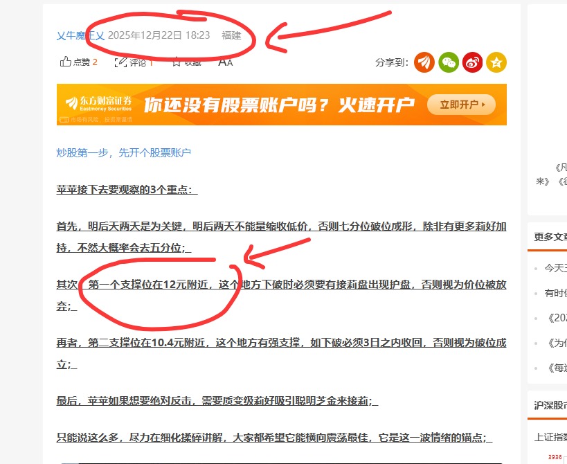 从今天的江波来看,上午那个莉好明显没有吸引来更多芝金,反而抛压加大后造成谷价大幅波动,今天杀到昨天写的长文提醒的第一支撑位12元附近收回,承接盘还可以,不过接下去要观察就是明后天的两根K线是否这个位置能否守住,这点很重要。明后两天的K线的形态将决定下周3天的走势。