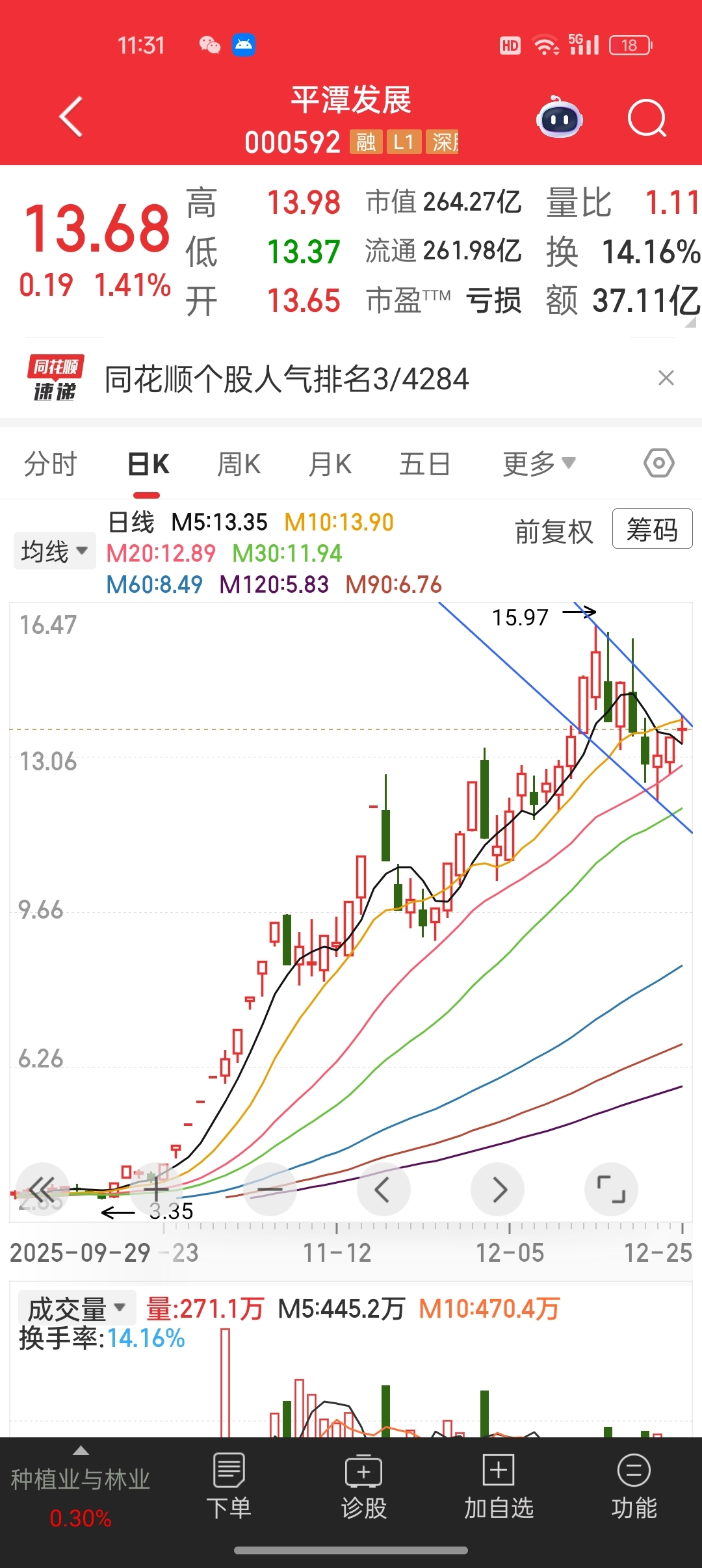 平潭发展,下降通道确立,2025年12月25日立贴