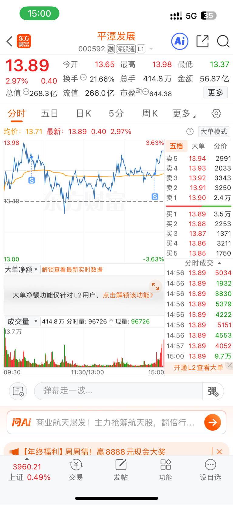 $平潭发展(SZ000592)$ 卖飞了