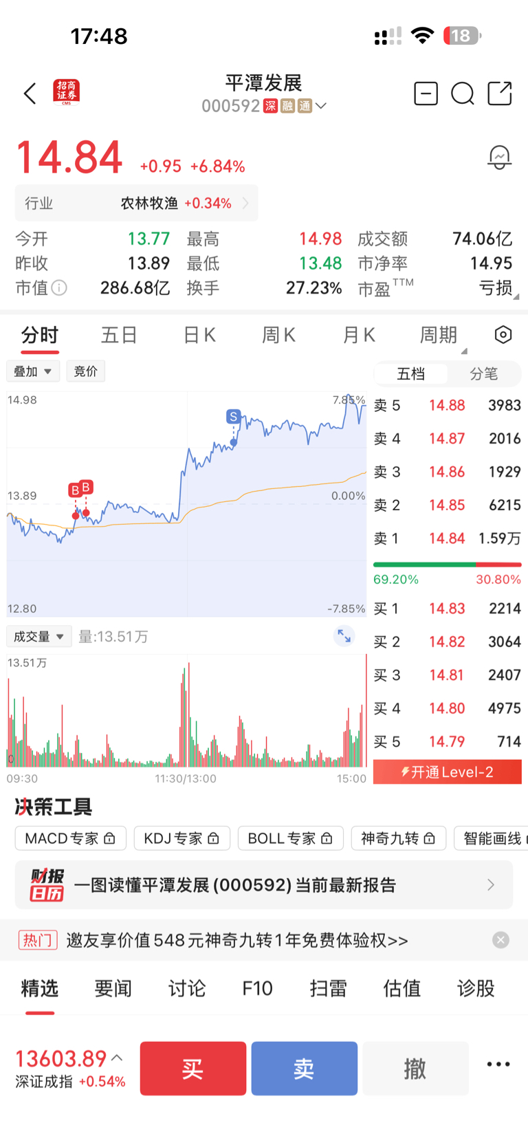 $平潭发展(SZ000592)$ $中超控股(SZ002471)$ 拿了一个星期昨天终于回本,想着今天解禁,尾盘卖了中超控股,今天却涨停了,早上睡过头了,醒来时想着既然中超控股吃不到肉,就补了一下平潭,做个t,这两个股都被套了一个多星期,今天终于回本了,不知道下周能吃到肉吗