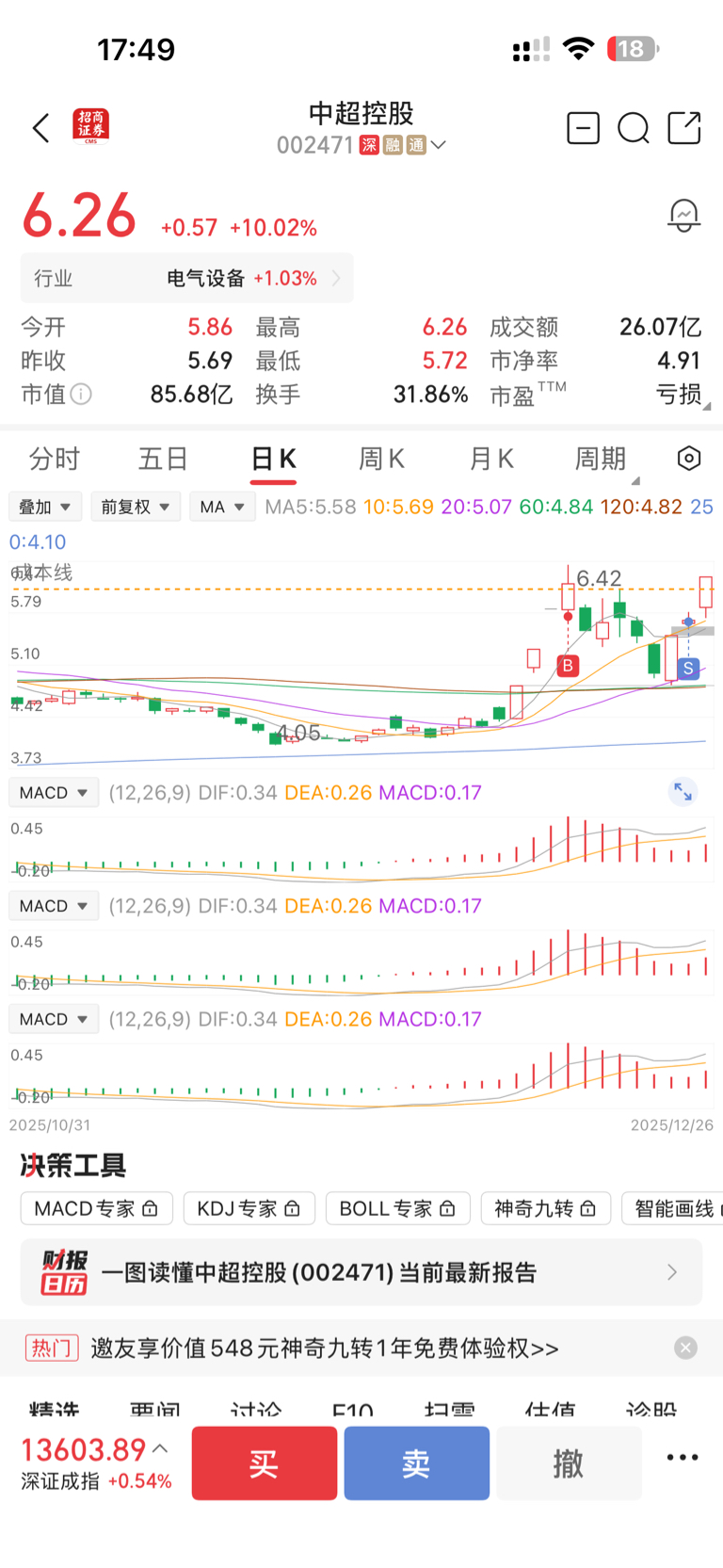 拿了一个星期昨天终于回本,想着今天解禁,尾盘卖了中超控股,今天却涨停了,早上睡过