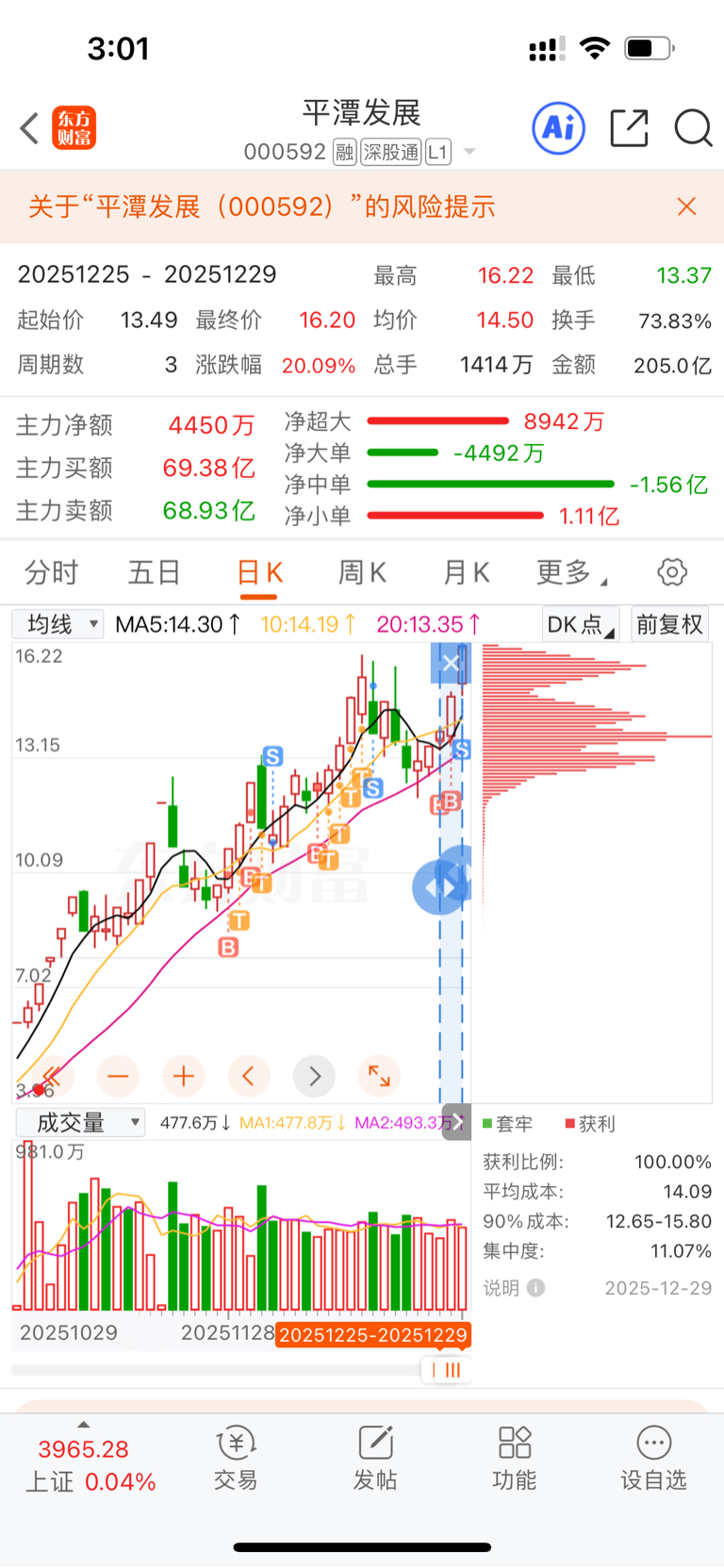 $平潭发展(SZ000592)$ 这么好的票,为什么就要搞废呢?和上次一样倒数第二天触发3日异动,不用看了,明天到期了继续监管,逼的我尾盘竞价全部卖了