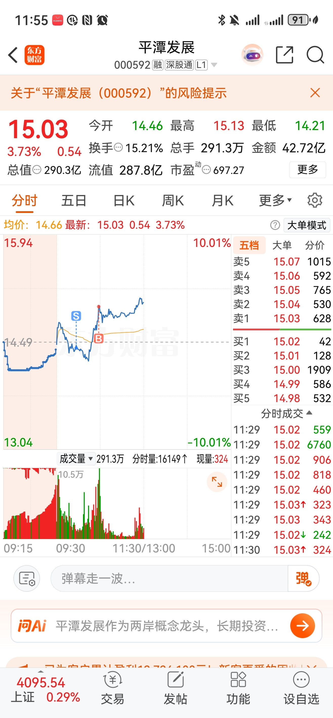 $平潭发展(SZ000592)$ 啥意思?我从元旦扛到现在,实在扛不住了,一卖你就给我涨,又补进来了