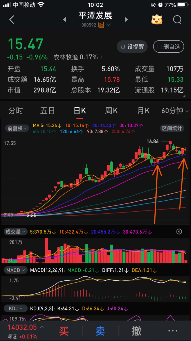 $平潭发展(SZ000592)$ $海峡创新(SZ300300)$ 平潭是上行趋势,海峡是把均线打下来,再回上去。上方均线太高,形成压力。