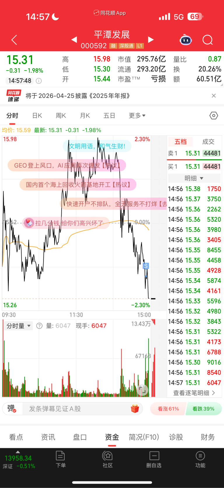 $平潭发展(SZ000592)$ 很格局了。赚两个点