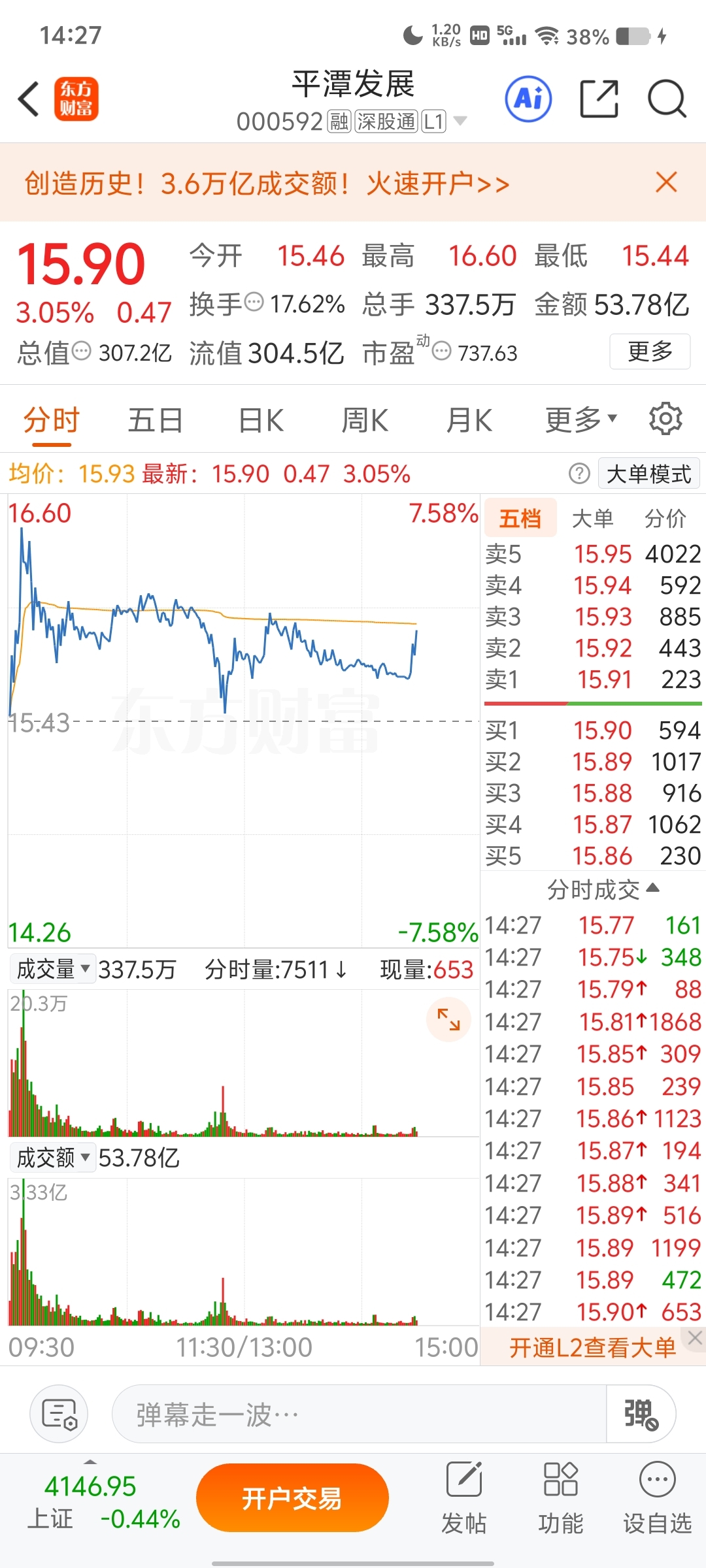 $平潭发展(SZ000592)$ 航天的人来捣乱了