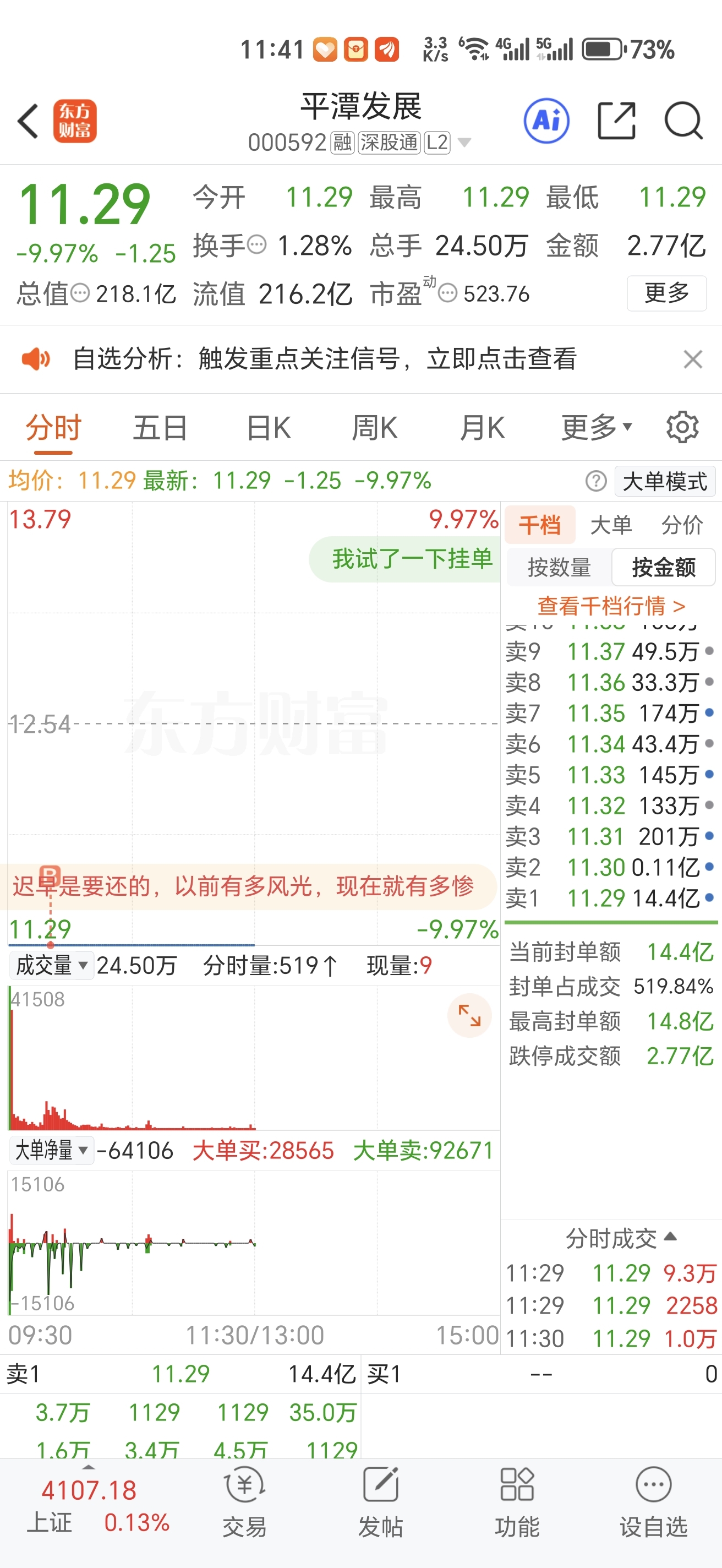 $平潭发展(SZ000592)$ 你们走吧,今天我先进来半仓。再进半仓!就不信能连续跌停6天