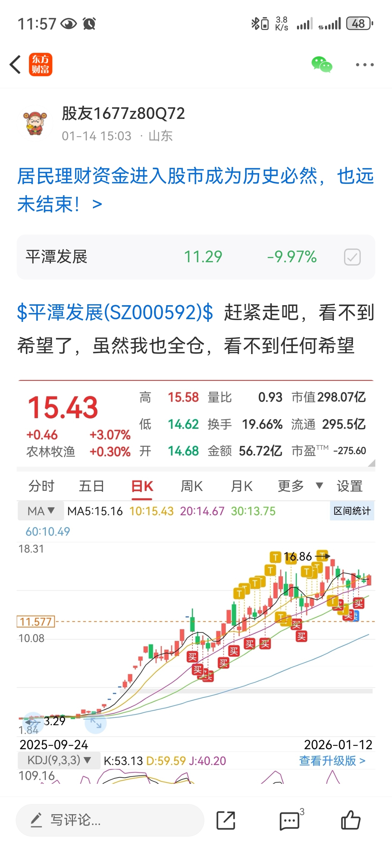 $平潭发展(SZ000592)$ 还是贪了 说了要走,结果没有走,硬吃了三个地板,最喜欢的一直票,现在只能继续格局,割肉外面什么好买的,一地鸡毛。