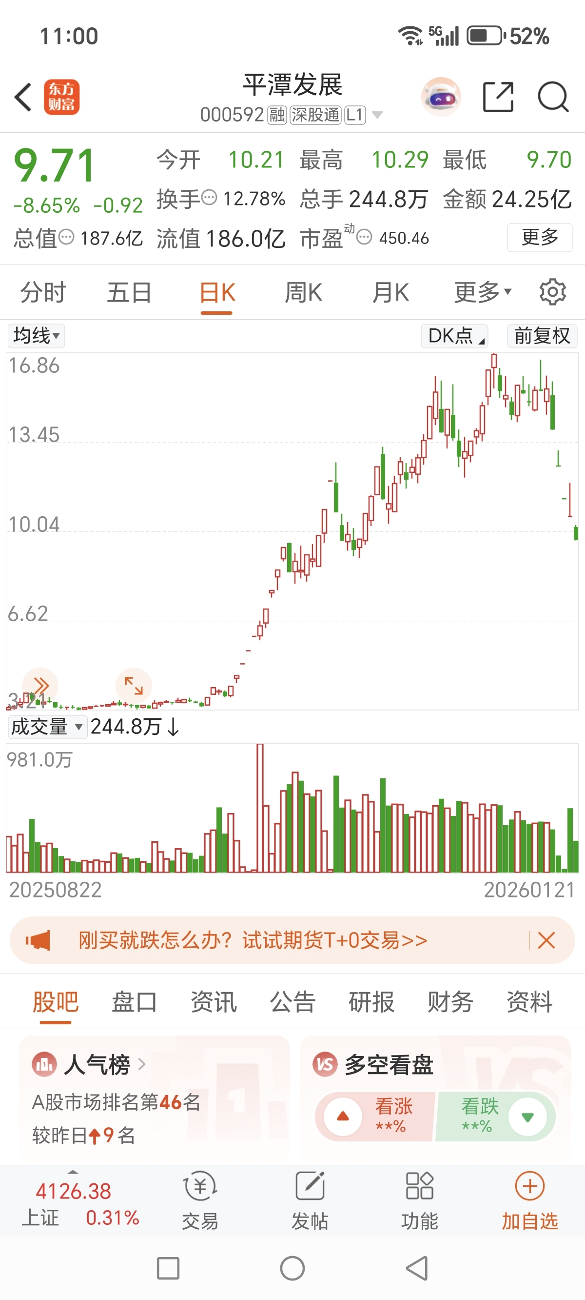 $平潭发展(SZ000592)$ 我一朋友把买房的首付款在15.4元全仓进了平潭发展,当时我劝他,他还不听,现在被套住了,他女朋友要和他分手,他说他知道后悔了