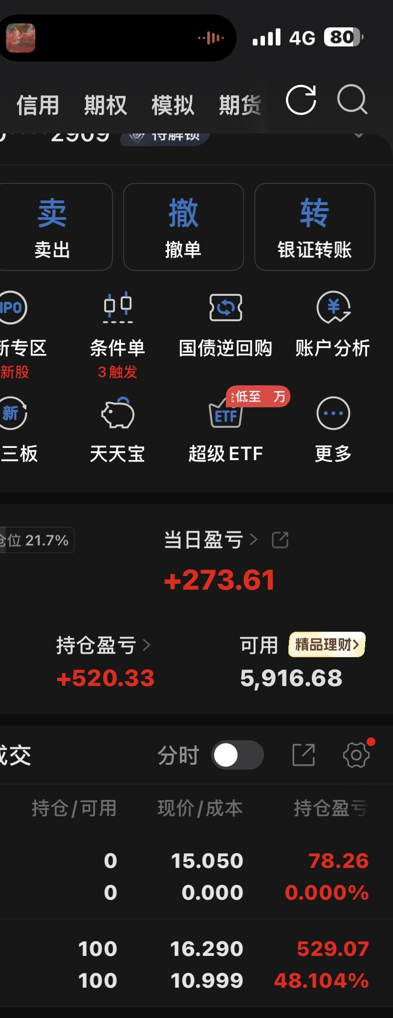 几千块钱玩的妹子来溜达了。恭喜家人今天涨的挺漂亮。说好的晒买卖点来了。祝家人好运