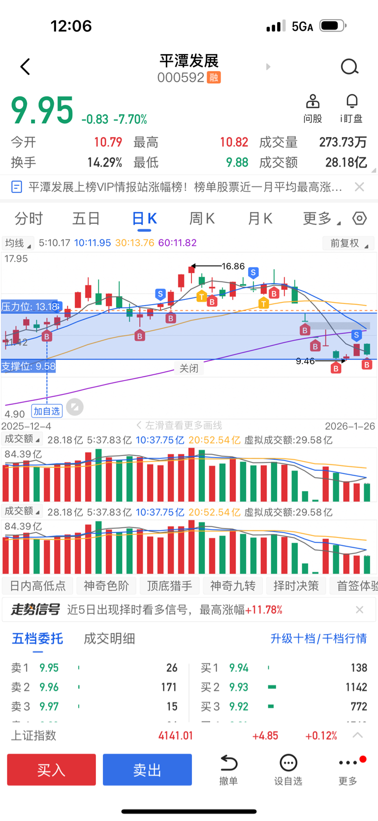 $平潭发展(SZ000592)$ 悲哀啊,你跌一次只能加一次