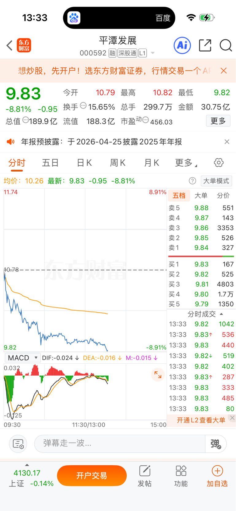 $平潭发展(SZ000592)$ 估计跌到7.83才能反弹