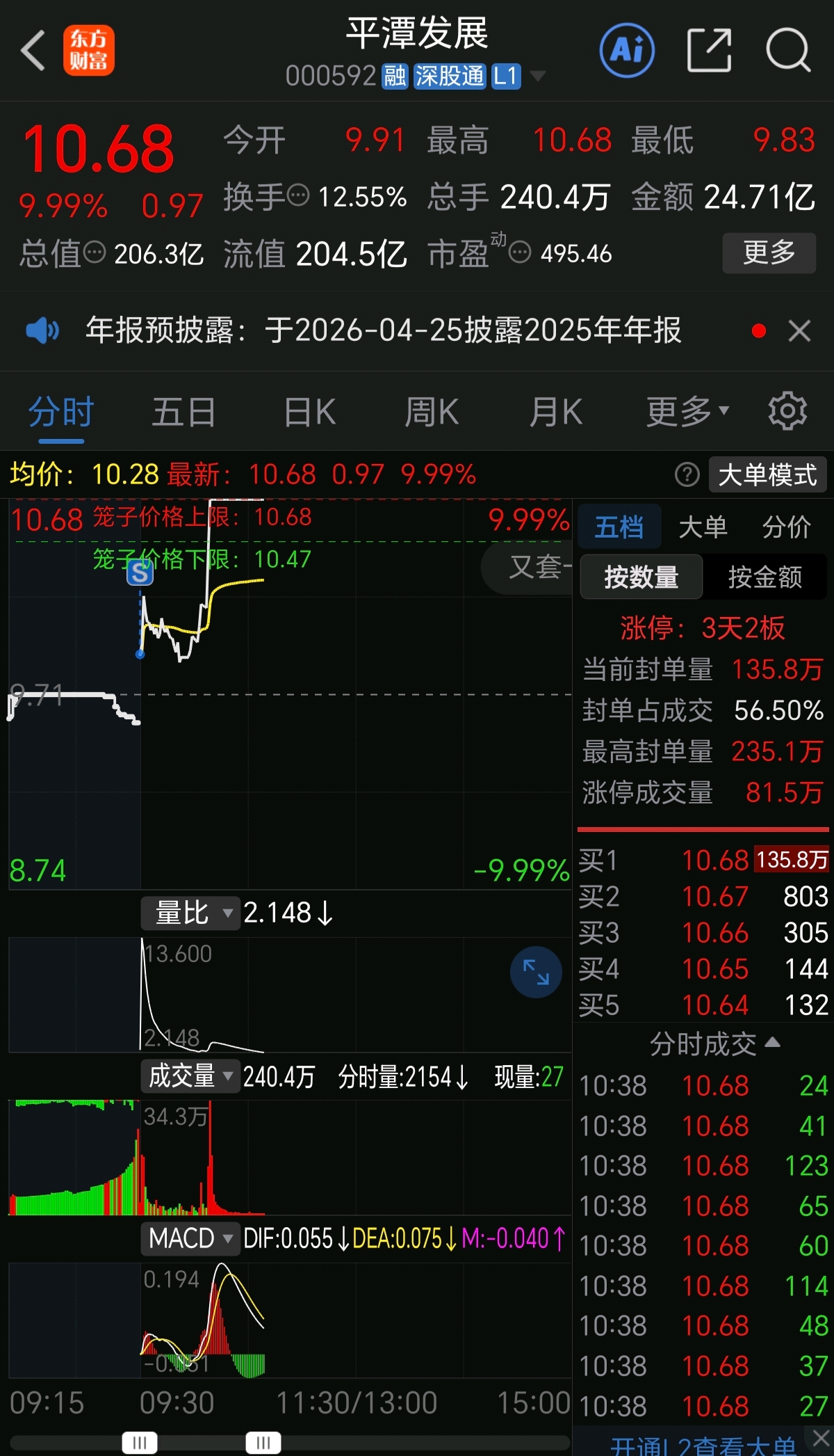 $平潭发展(SZ000592)$ 成功卖飞涨停股