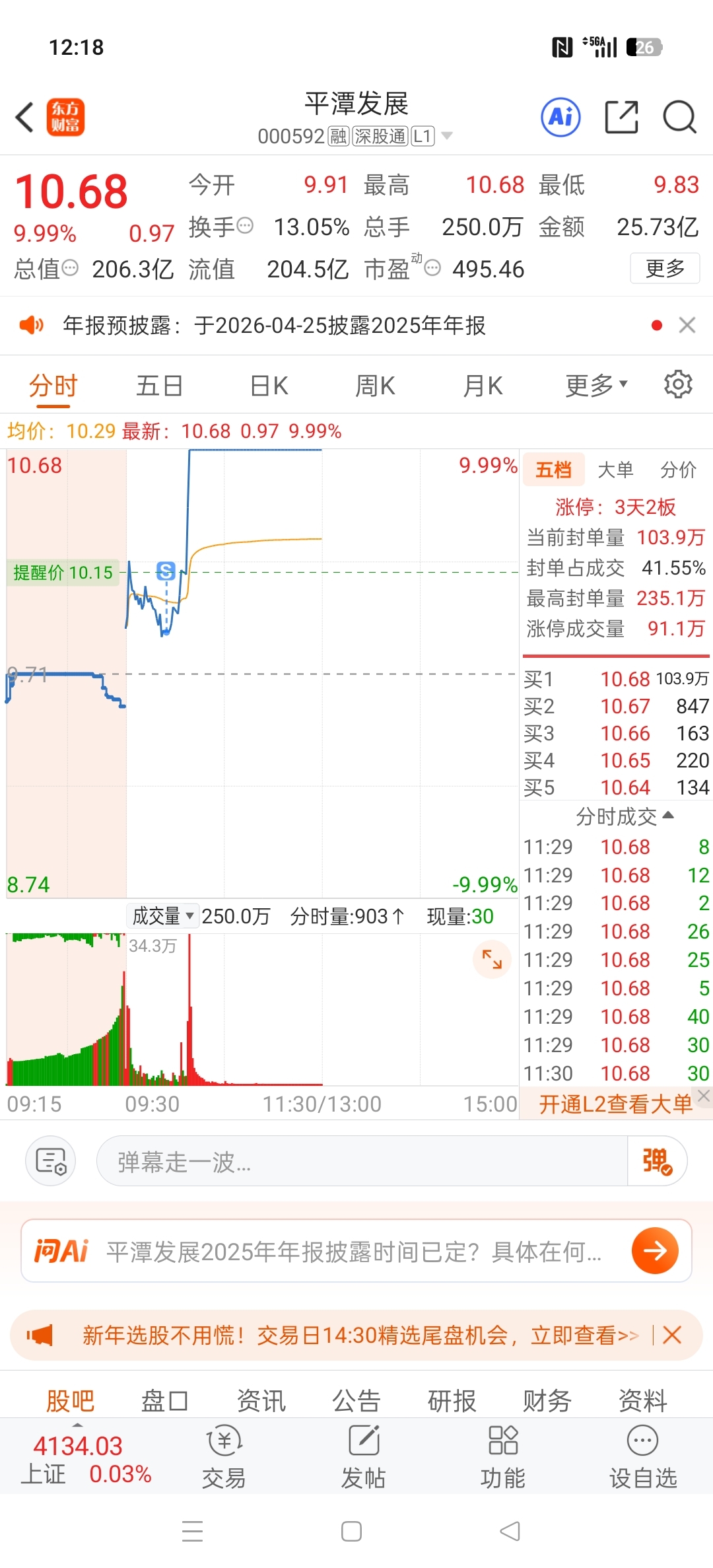 $平潭发展(SZ000592)$ 10.15均价,确定性出来都是秒,开盘冲高就没拉上去,昨天抄底白忙了