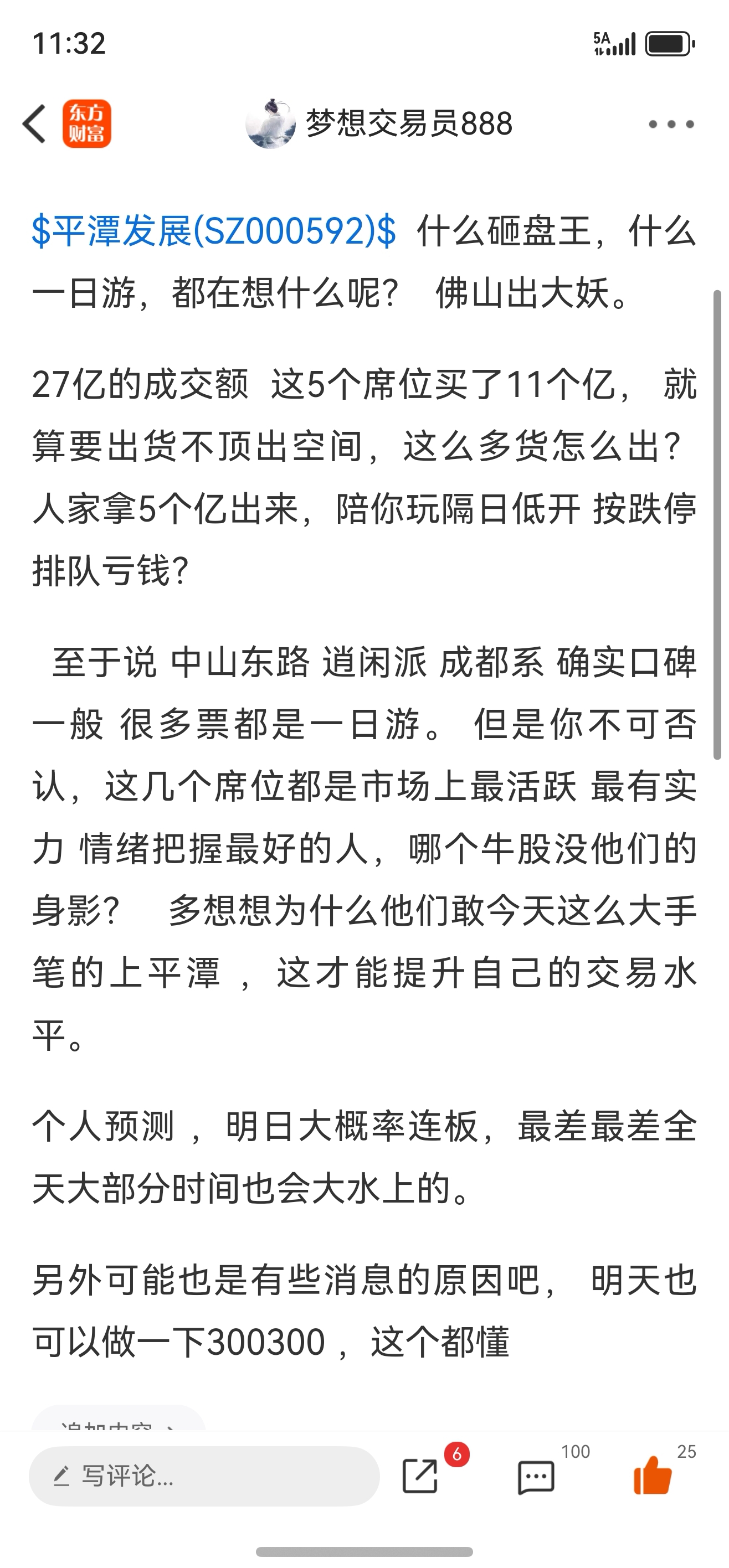 $平潭发展(SZ000592)$ 没想到昨天的帖子成了热贴,看一堆人说要隔夜挂跌停跑,跟大家打了个赌。 盘中没有三五个点以上的涨幅评论区一人200块。 今天走势基本符合预期,红包是发不出去了
