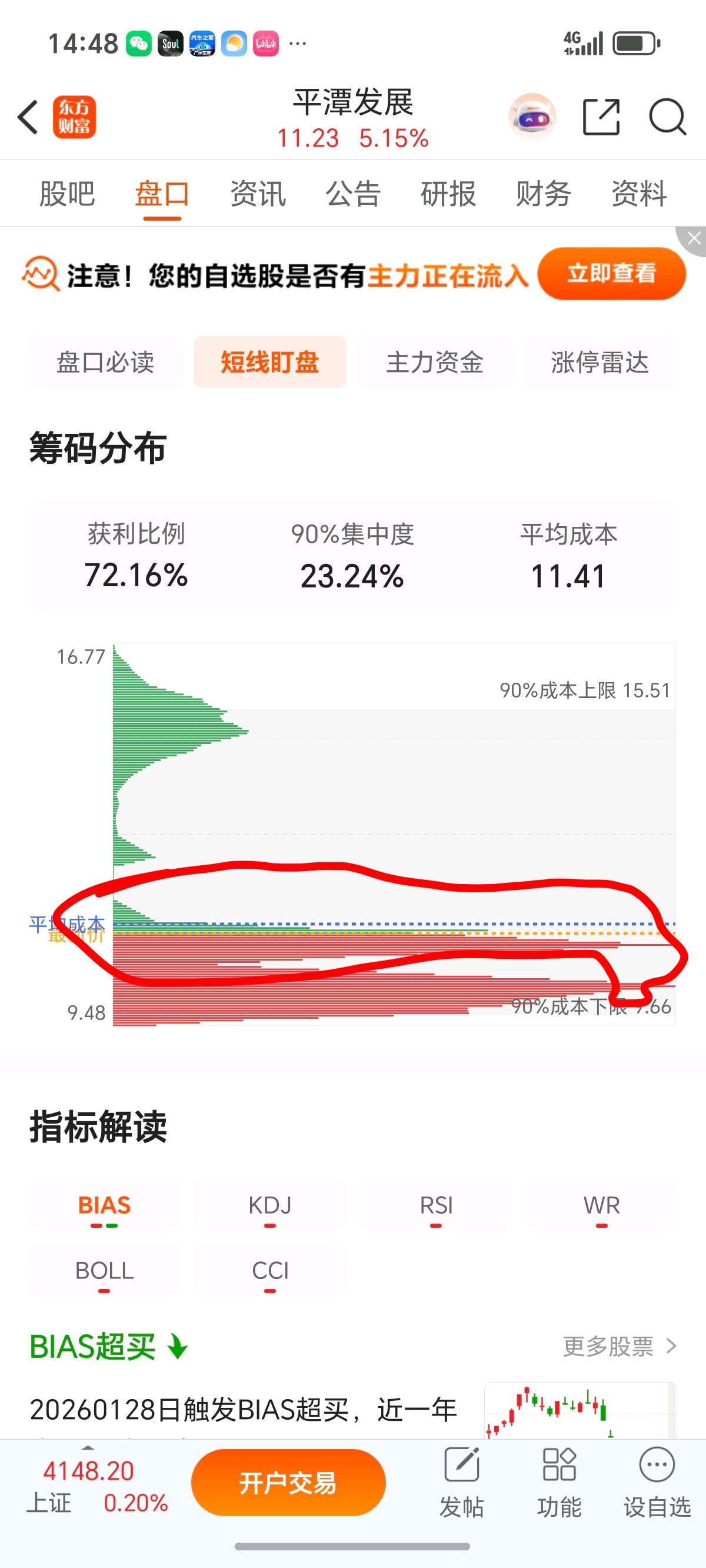 筹码峰主力都吃到这个位置了,明天必有一板,解放了高位套牢盘,前面11.50-11