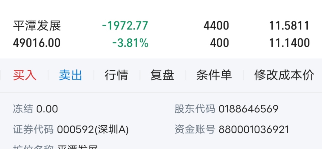 $平潭发展(SZ000592)$ 10.91加仓20手,目前总计44手,明天不知道什么情况,小白瑟瑟发抖中。