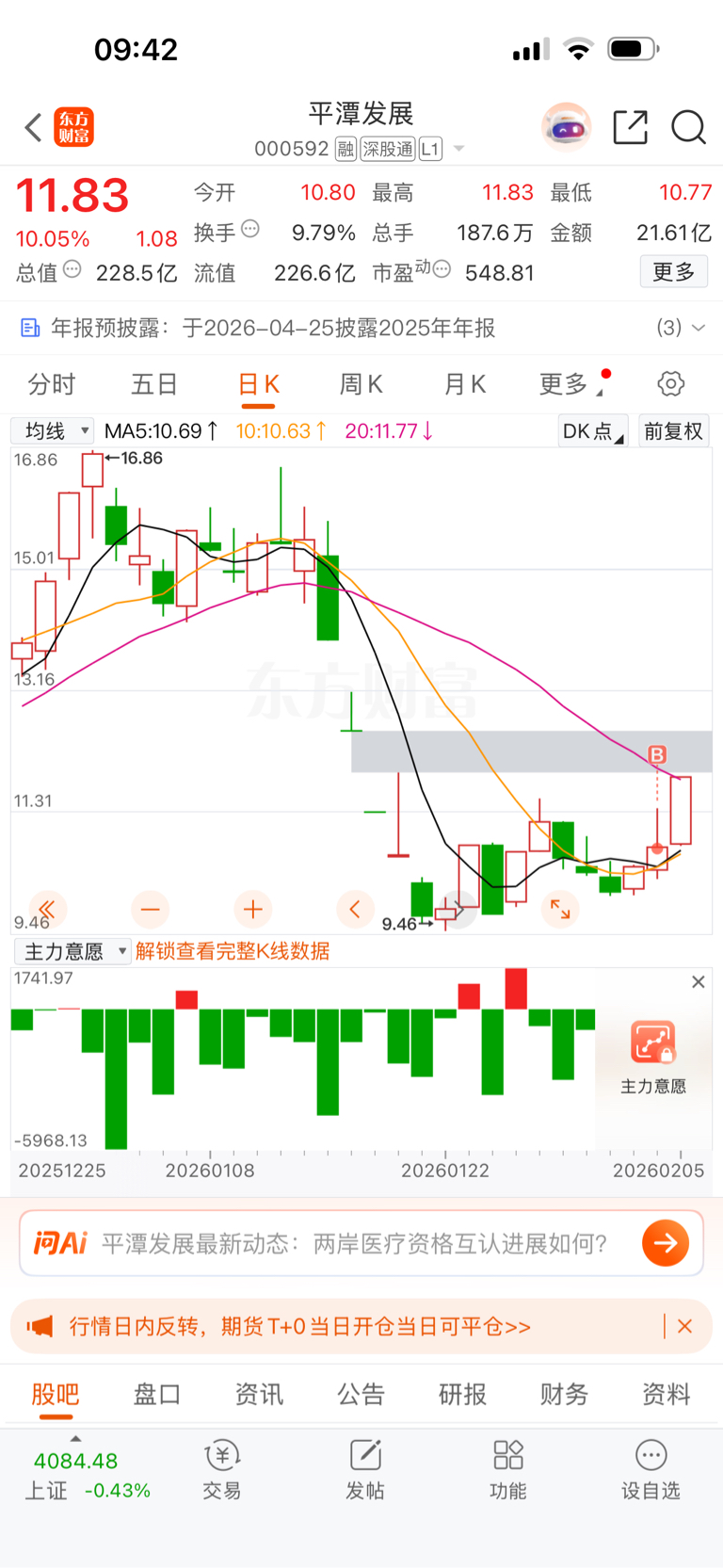 $平潭发展(SZ000592)$ 观望许久,昨天尾盘满仓打进去了,跟着大哥们喝口汤