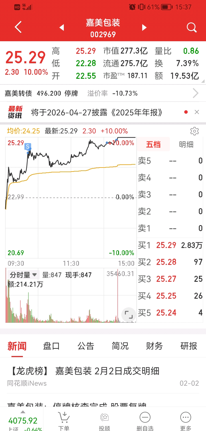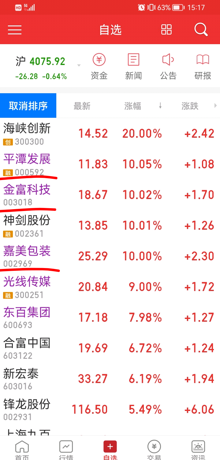嘉美包装高位8,9个点也被洗了筹码,磨到尾盘才涨停,我认了,金富科技一点没减仓,没盯它