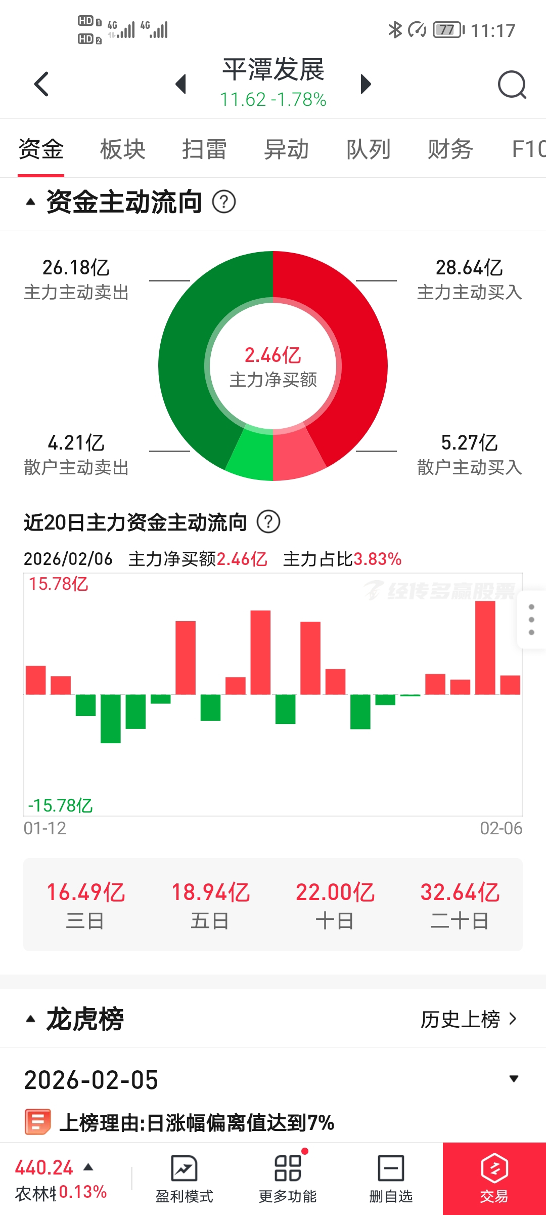 $平潭发展(SZ000592)$ 平均成本上升来到11.25元(没有主力拉高并承接抛单,是不可能拉高平均成本的),周五主力大单出(东财统计50万以上的为主力),无数小单进,实际主力净流入2.46亿,底部获利筹码大量兑现离场。
