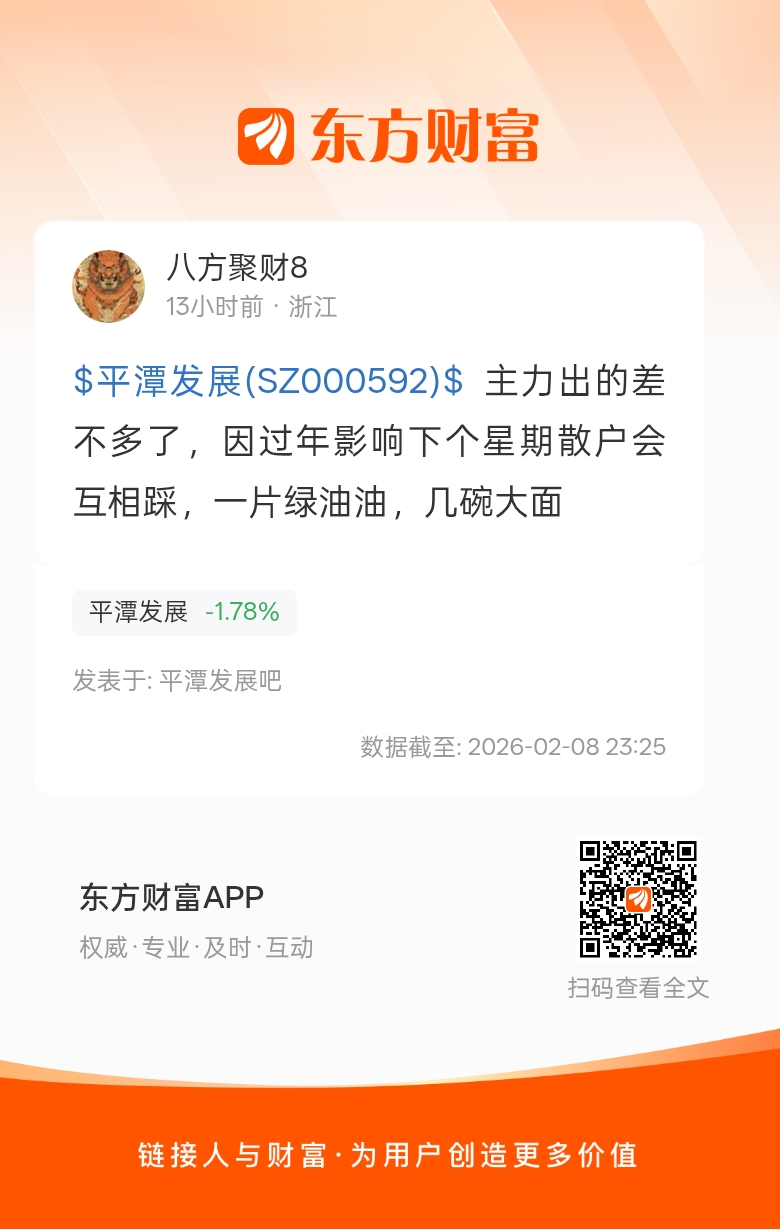 $平潭发展(SZ000592)$  主力出的差不多了,因过年影响下个星期散户会互相踩,一片绿油油,几碗大面