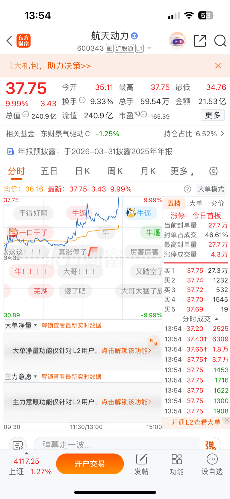 $平潭发展(SZ000592)$ 兄弟们,早上走了,吃了涨停板了,哈哈