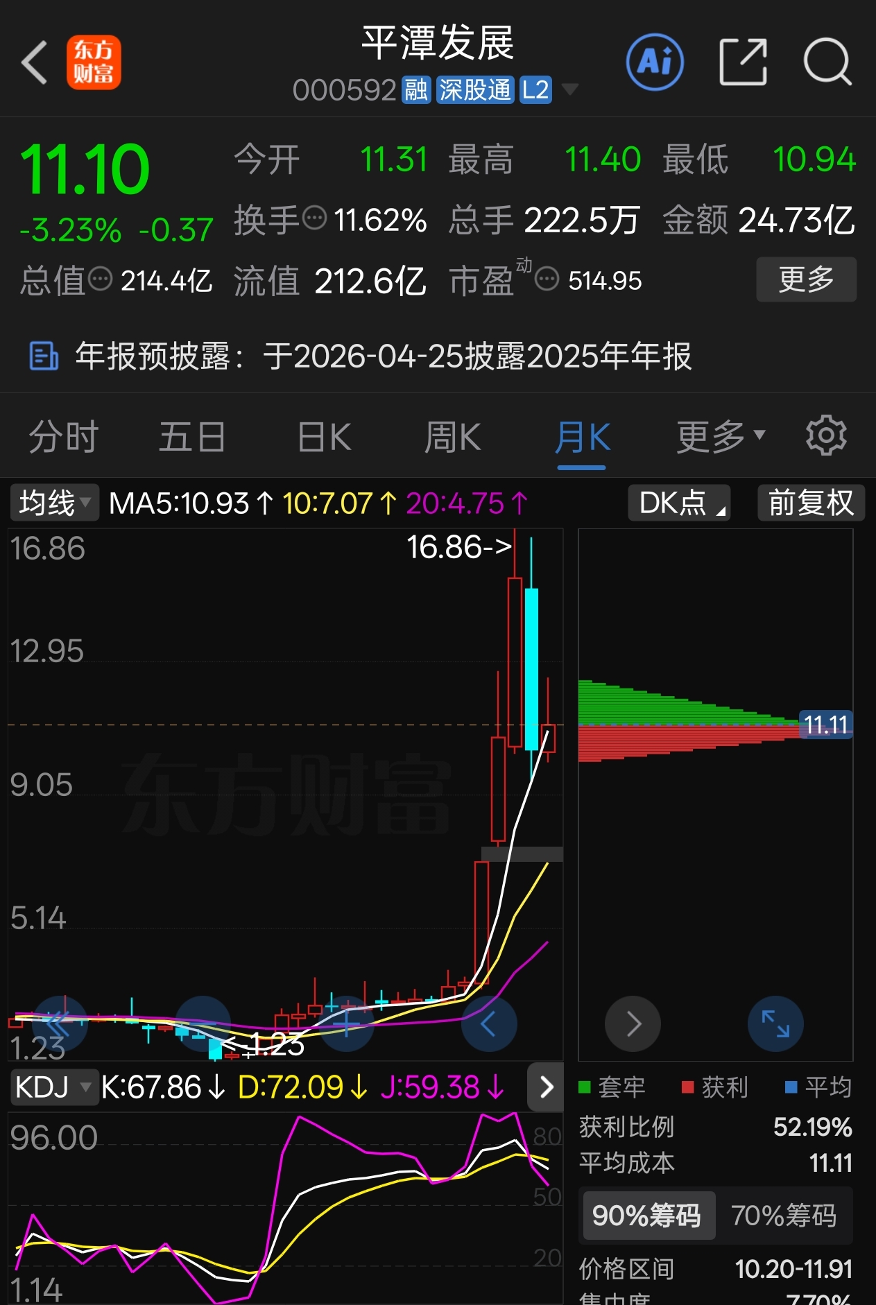 $平潭发展(SZ000592)$ 获利盘还是太多了