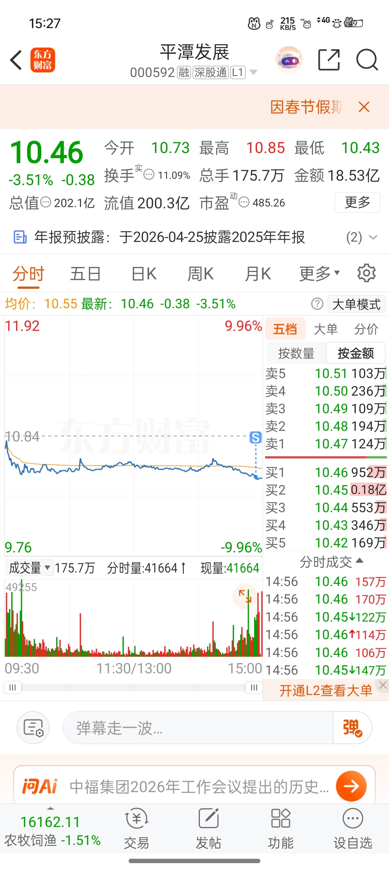 $平潭发展(SZ000592)$ 原来只要我走了,你就能起飞,是我压制了你呀!全仓的时候一路阴跌,14拿到10块