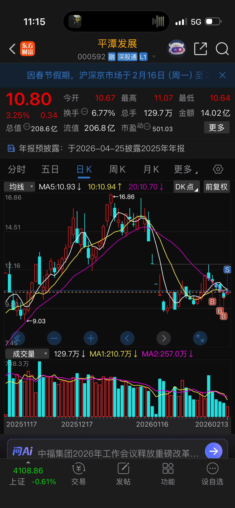 $平潭发展(SZ000592)$ 没量 保本退出 浪费好几天时间