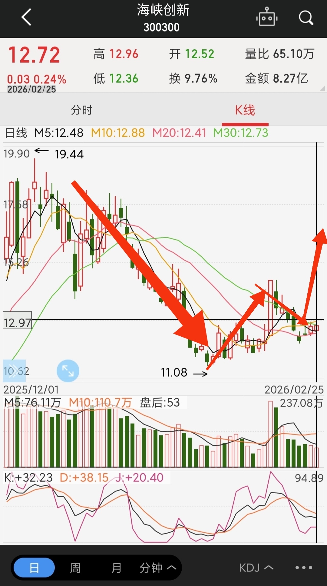1、开盘平潭发展和海峡创新又是和前两天一样低开回落,我顺势低位增加了关注,十点左右平潭发展海峡创新主力拉升大涨,原有仓位全部取关,思路正确,尾盘这两支股是没有顶住压力进一步回调,但就K线形态来说像仙人指路,需要后市验证,昨天能够把握领悟得当的应该也是收到了一波红包行情。
