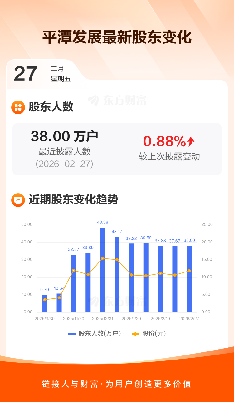 平潭发展:截至2月27日最新股东户数38.00万户,较上期增加0.88%