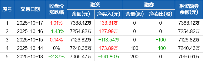 德龙汇能:融资净买入133.31万元,融资余额7388.12万元(10-17)