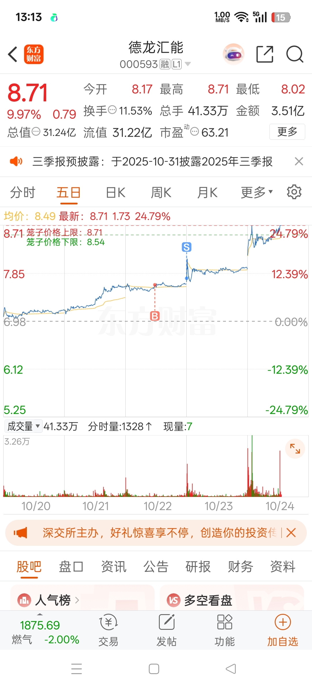 $德龙汇能(SZ000593)$ 哭死在厕所