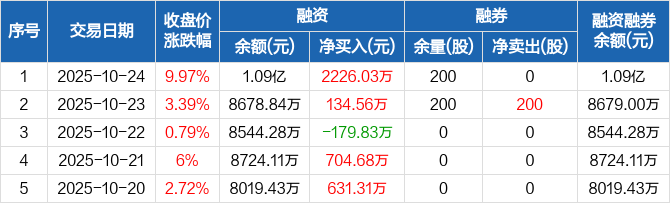 德龙汇能:融资净买入2226.03万元,融资余额1.09亿元(10-24)