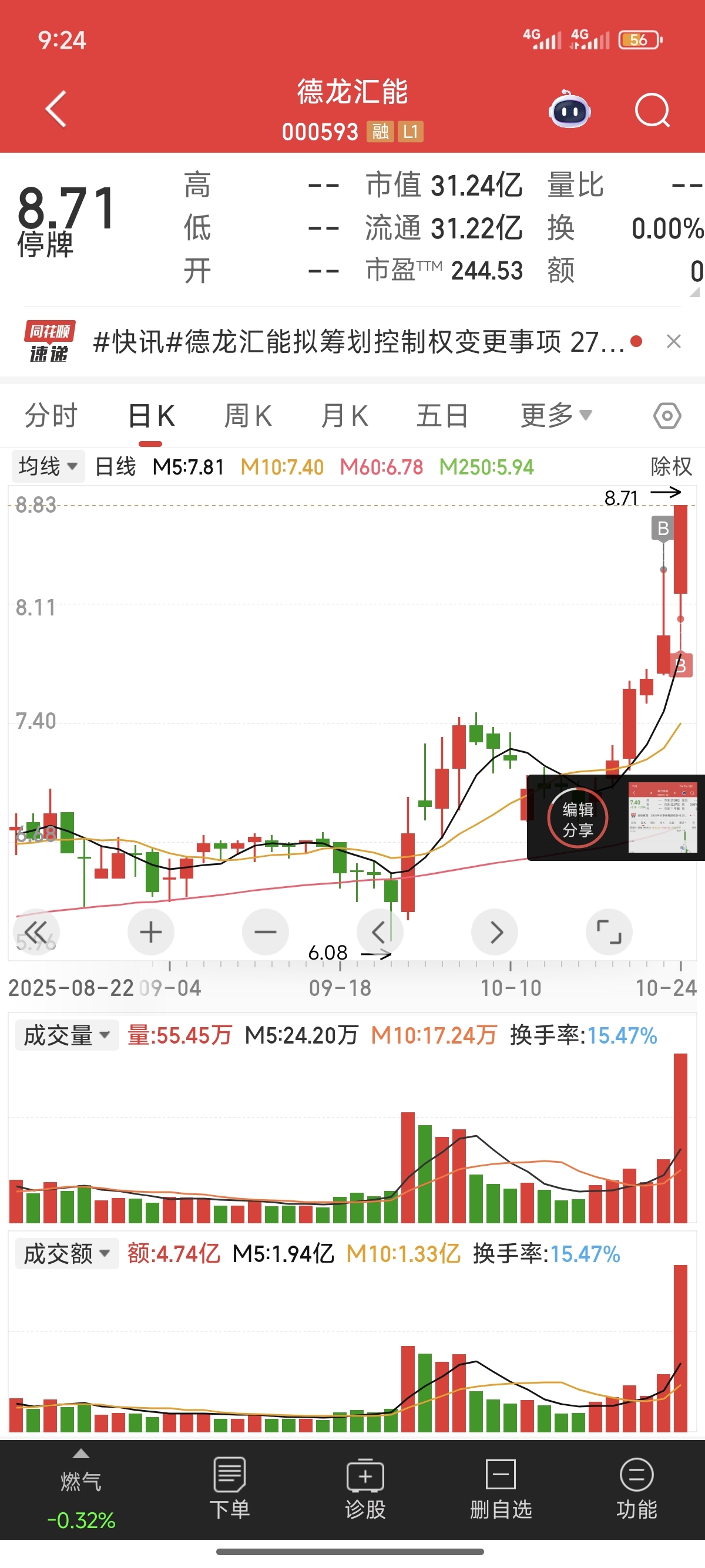 $德龙汇能(SZ000593)$ 老子与德有缘吗……玛德老子一天不操作浑身难受,这次满仓啊,你特么又得停牌多久……