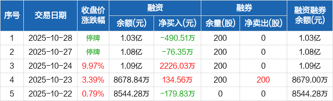 德龙汇能:融资净偿还490.51万元,融资余额1.03亿元(10-28)