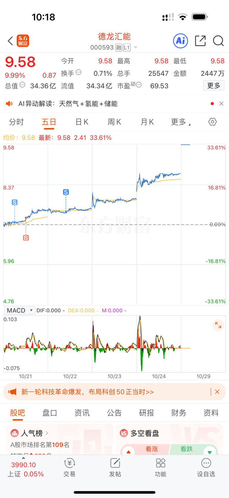 $德龙汇能(SZ000593)$ 哎 看的很准就是没耐心 卖飞了