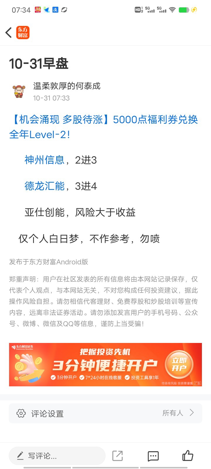 温馨提示: 1.根据《证券法》规定,禁止编造、传播虚假信息或者误导性信息,扰乱证券市场;2.用户在本社区发表的所有资料、言论等仅代表个人观点,与本网站立场无关,不对您构成任何投资建议。用户应基于自己的独立判断,自行决定证券投资并承担相应风险。《东方财富社区管理规定》