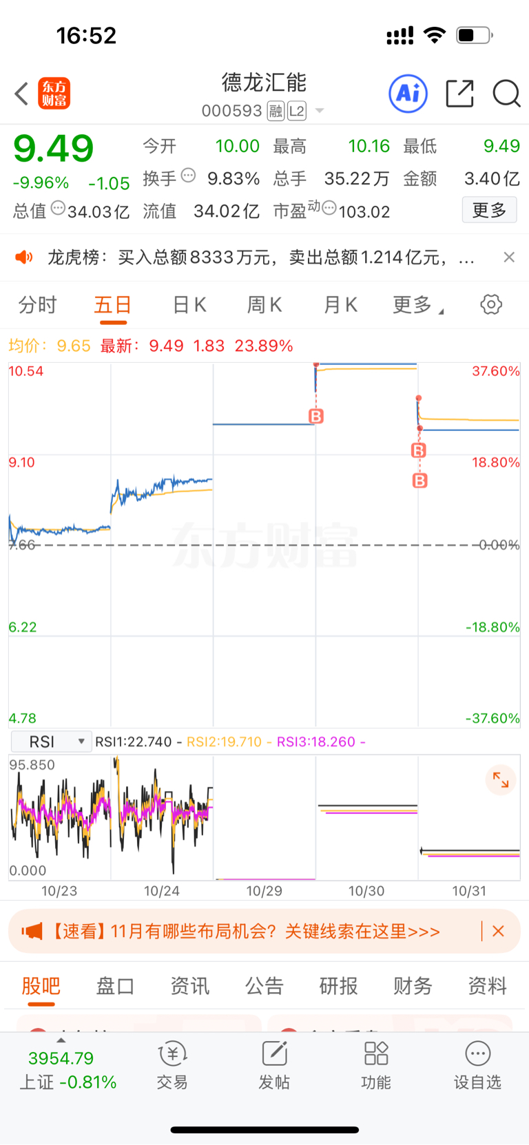 $德龙汇能(SZ000593)$ 昨天打板进的,今早最高价买的也没谁了4号选手