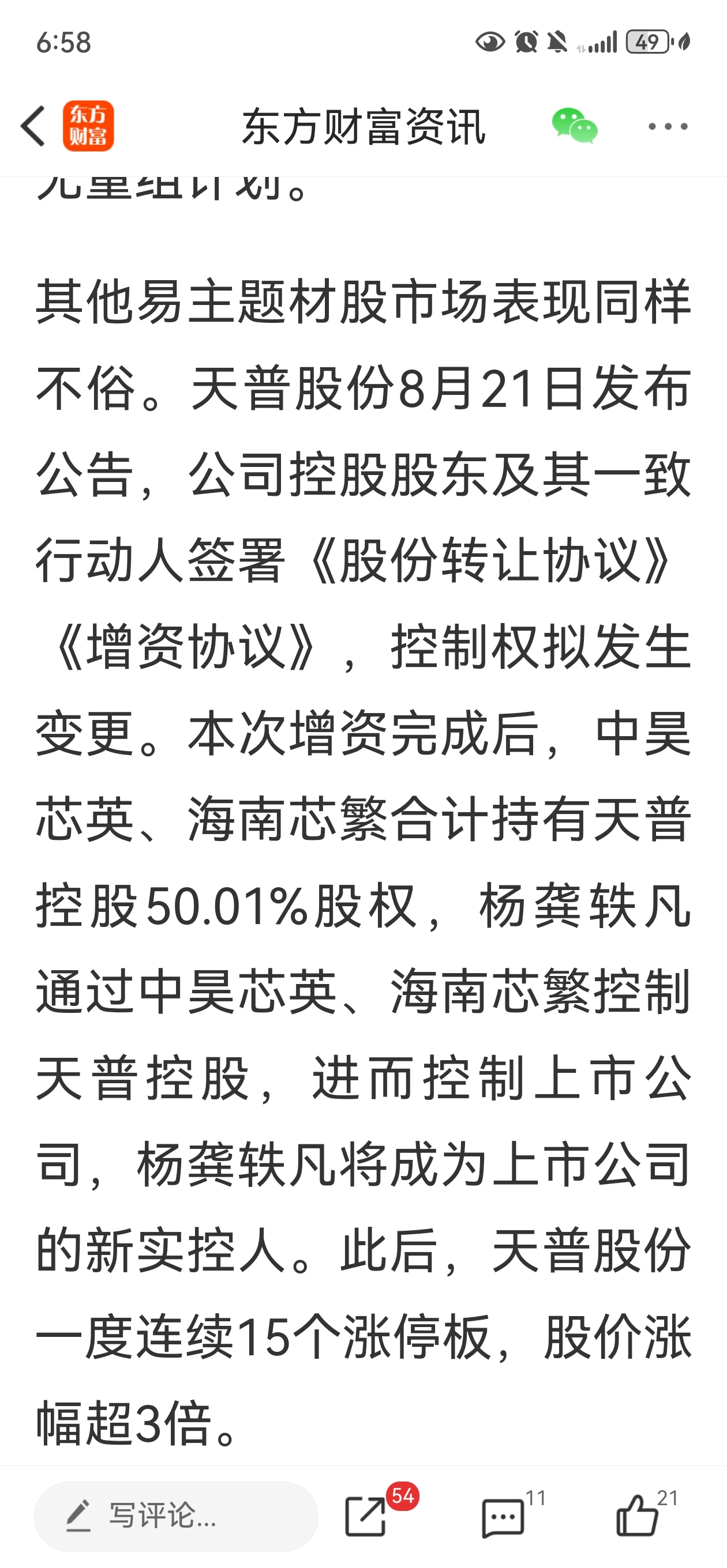 天普股份签署股权转让协议后15个涨停板,预期不该这么低,留着等肉吃