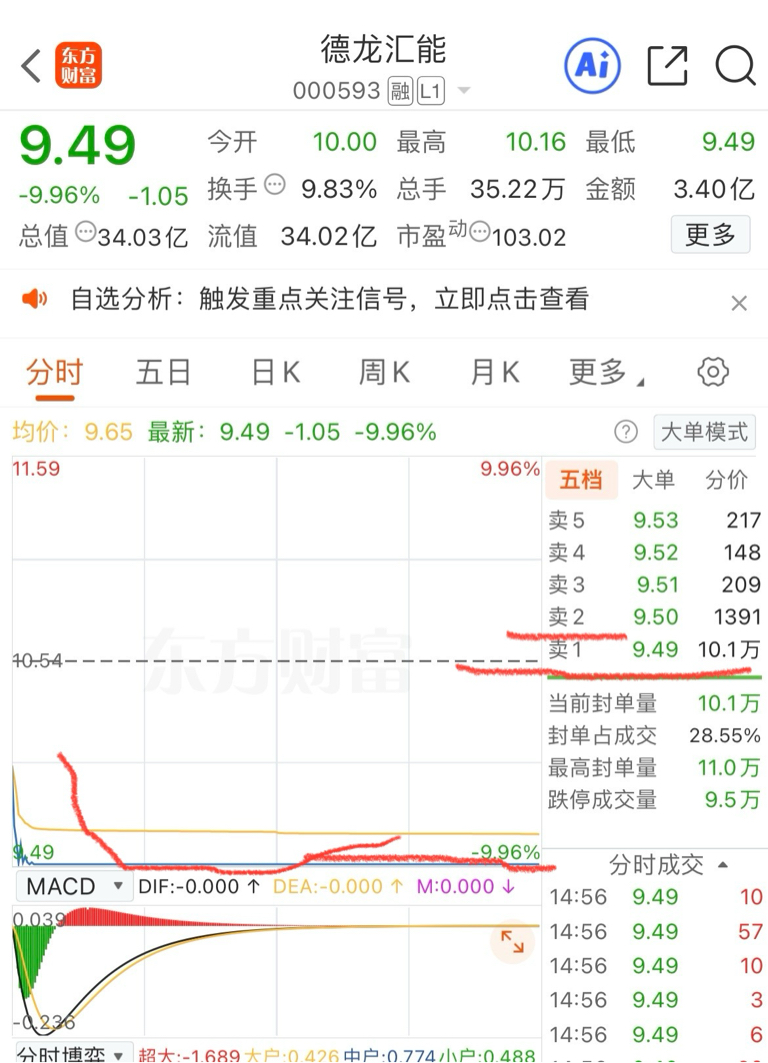 $德龙汇能(SZ000593)$ 又开始了 ,一个个的唱多。 唱多, 忘记10月31日下跃,封杀了,现在你能看见是10万手封单,一直维持这个量。 压的死死的 。明天低开开始铁一样的事实。不要冲动 ,一开盘就往里进, 然后就闷在里面。出来都出不来。会回调的。