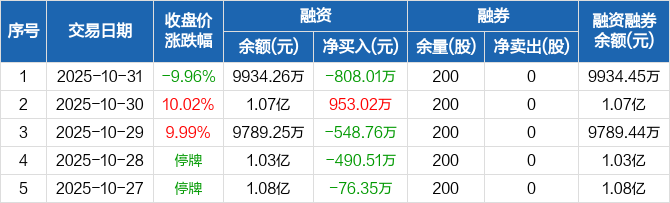 德龙汇能:融资净偿还808.01万元,融资余额9934.26万元(10-31)